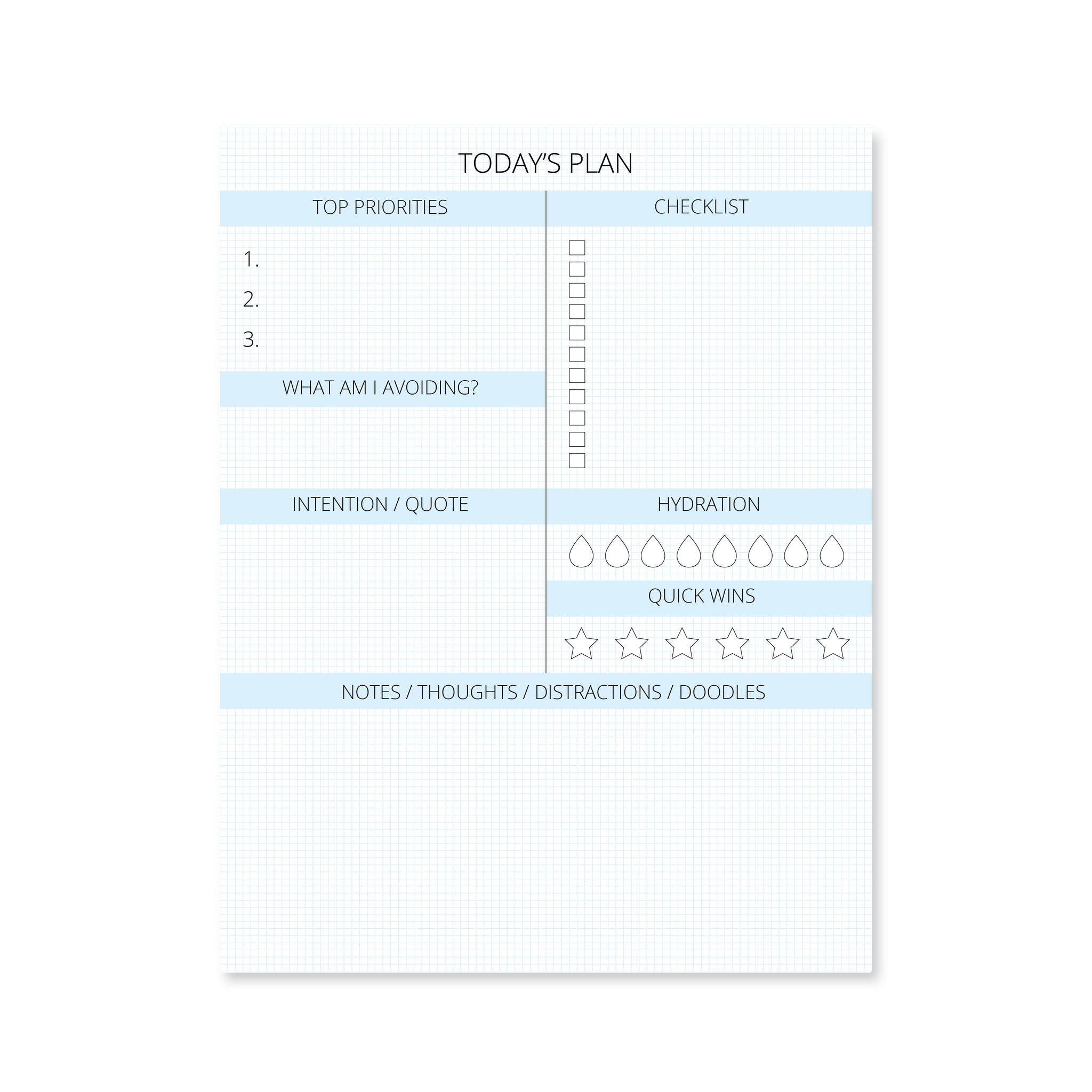 Some of us need a little extra help staying focused. Our ADHD task pad is one I designed especially for myself. It breaks my day down into manageable categories so I can stay focused, hydrated and avoid overwhelm. I like to use the bottom section for things that pop into my head (that I'd normally run off and do right away - i.e., distractions). This has been an incredibly helpful way for me to keep track of all the things running through my head while staying focused on the day's priorities.