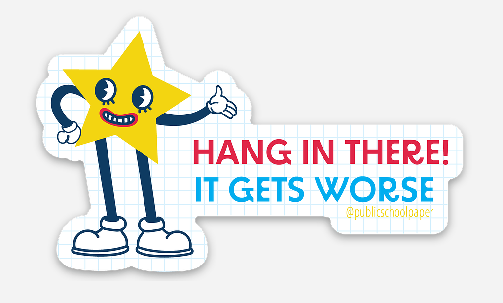 Our sticker collection is the best! This is one of our newest designs, and it's very sad, but true. Perfect for the realist, pessimist, skeptic or cynic in your life. It's got a cheerful retro-inspired star character sharing a little sarcastic wisdom.